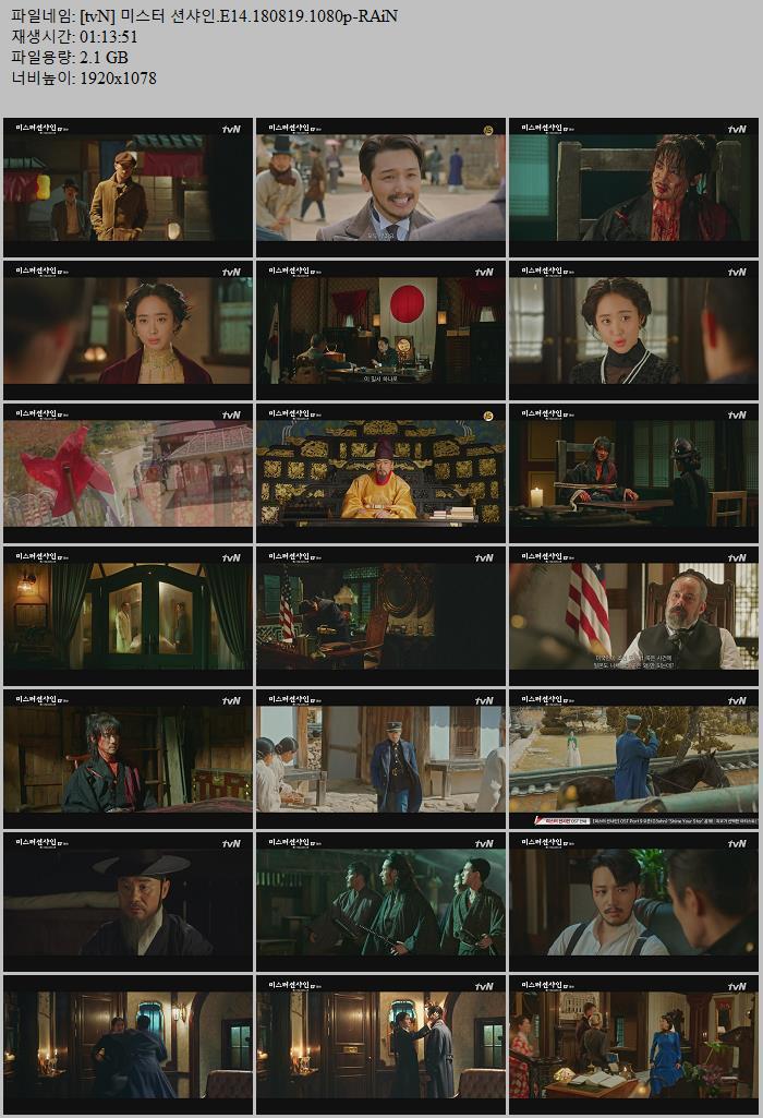 드라마 tvN 미스터 션샤인 [tvN] 미스터 션샤인.E14.180819.1080p-RAiN [이병헌 김태리 유연석 변요한 김민정] ceasar1995 2026.01.01 4,929 2.1G 다운로드 1개 파일 [tvN] 미스터 션샤인.E14.180819.1080p-RAiN.mkv 2.1G 다운 추천 519 북마크 공유 목록 Tags tvN 미스터 션샤인 E14 180819 1080p RAiN 이병헌 김태리 유연석 변요한 김민정