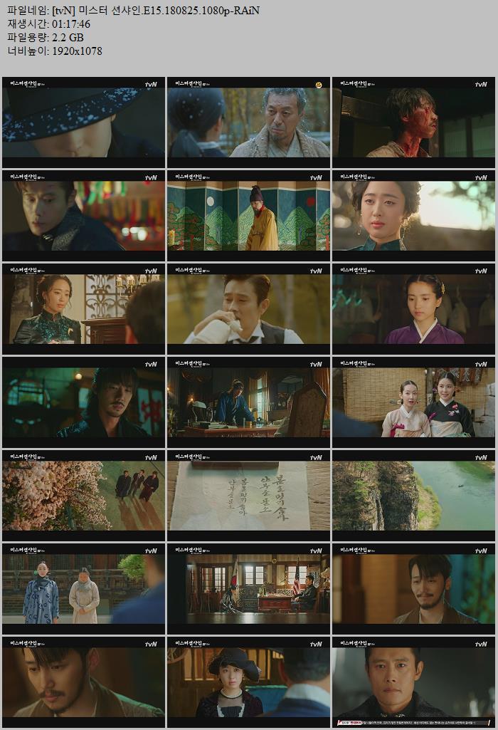 드라마 tvN 미스터 션샤인 [tvN] 미스터 션샤인.E15.180825.1080p-RAiN [이병헌 김태리 유연석 변요한 김민정] ceasar1995 2026.01.01 5,606 2.2G 다운로드 1개 파일 [tvN] 미스터 션샤인.E15.180825.1080p-RAiN.mkv 2.2G 다운 추천 631 북마크 공유 목록 Tags tvN 미스터 션샤인 E15 180825 1080p RAiN 이병헌 김태리 유연석 변요한 김민정
