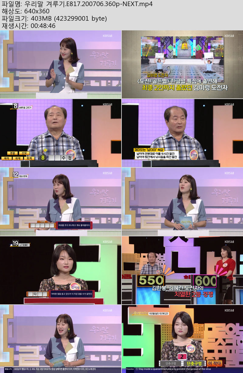 방송/동영상 우리말 겨루기 E817 우리말 겨루기.E817.200706.360p-NEXT 우야쓰꼬 2026.01.01 5,939 403.7M 다운로드 1개 파일 우리말 겨루기.E817.200706.360p-NEXT.mp4 403.7M 다운 추천 797 북마크 공유 목록 Tags 우리말 겨루기 E817 200706 360p NEXT