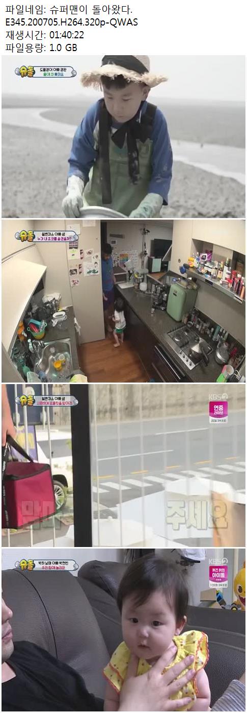 방송/동영상 슈퍼맨이 돌아왔다 E345 슈퍼맨이 돌아왔다.E345.200705.H264.320p-QWAS vkflcotnfl 2026.01.01 4,141 1.0G 다운로드 1개 파일 슈퍼맨이 돌아왔다.E345.200705.H264.320p-QWAS.mp4 1.0G 다운 추천 628 북마크 공유 목록 Tags 슈퍼맨이 돌아왔다 E345 200705 H264 320p QWAS