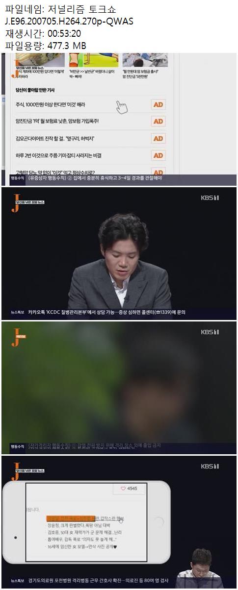 방송/동영상 저널리즘 토크쇼 J 저널리즘 토크쇼 J.E96.200705.H264.270p-QWAS vkflcotnfl 2026.01.01 4,247 477.3M 다운로드 1개 파일 저널리즘 토크쇼 J.E96.200705.H264.270p-QWAS .mp4 477.3M 다운 추천 613 북마크 공유 목록 Tags 저널리즘 토크쇼 J E96 200705 H264 270p QWAS
