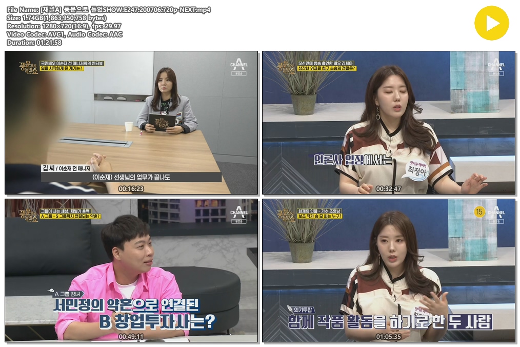 방송/동영상 채널A 풍문으로 들었SHOW [채널A] 풍문으로 들었SHOW.E247.200706.720p-NEXT alpsblue 2026.01.01 4,999 1.7G [채널A] 풍문으로 들었SHOW.E247.200706.720p-NEXT 다운로드 1개 파일 [채널A] 풍문으로 들었SHOW.E247.200706.720p-NEXT.mp4 1.7G 다운 추천 652 북마크 공유 목록 Tags 채널A 풍문으로 들었SHOW E247 200706 720p NEXT