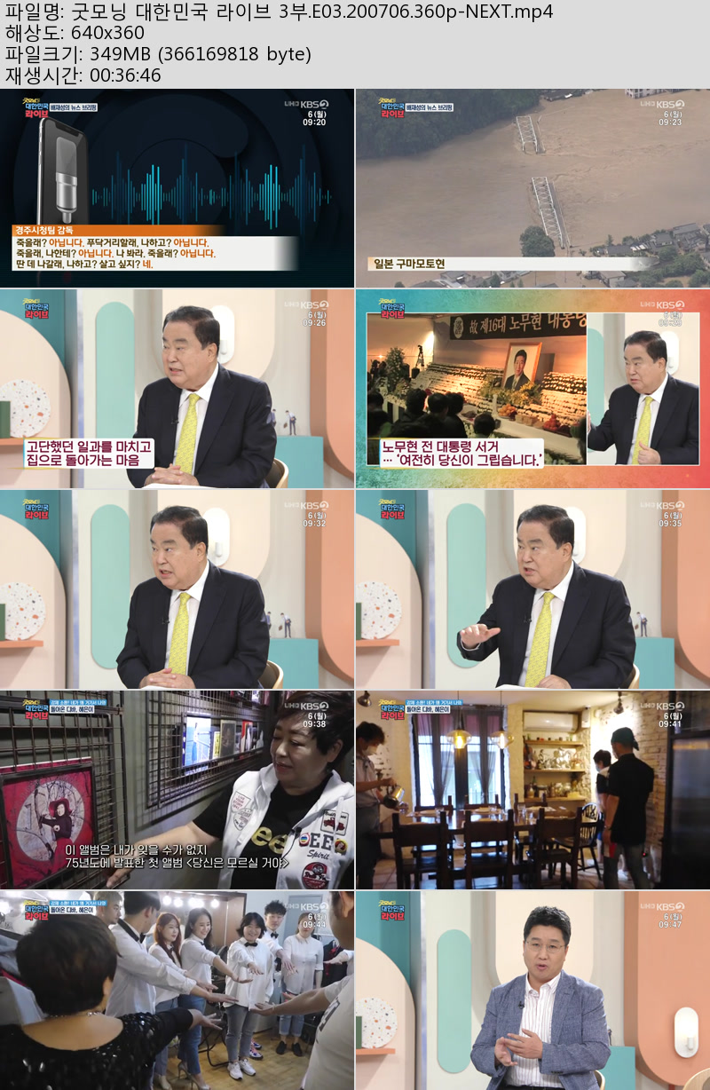 방송/동영상 굿모닝 대한민국 라이브 굿모닝 대한민국 라이브 3부.E03.200706.360p-NEXT 우야쓰꼬 2026.01.01 3,456 349.2M 다운로드 1개 파일 굿모닝 대한민국 라이브 3부.E03.200706.360p-NEXT.mp4 349.2M 다운 추천 665 북마크 공유 목록 Tags 굿모닝 대한민국 라이브 3부 E03 200706 360p NEXT