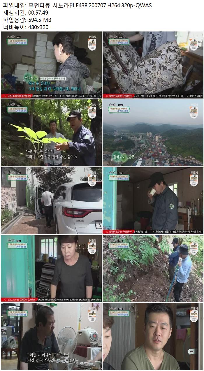 방송/동영상 휴먼다큐 사노라면 E438 휴먼다큐 사노라면.E438.200707.H264.320p-QWAS vkflcotnfl 2026.01.01 4,862 594.5M 다운로드 1개 파일 휴먼다큐 사노라면.E438.200707.H264.320p-QWAS.mp4 594.5M 다운 추천 756 북마크 공유 목록 Tags 휴먼다큐 사노라면 E438 200707 H264 320p QWAS