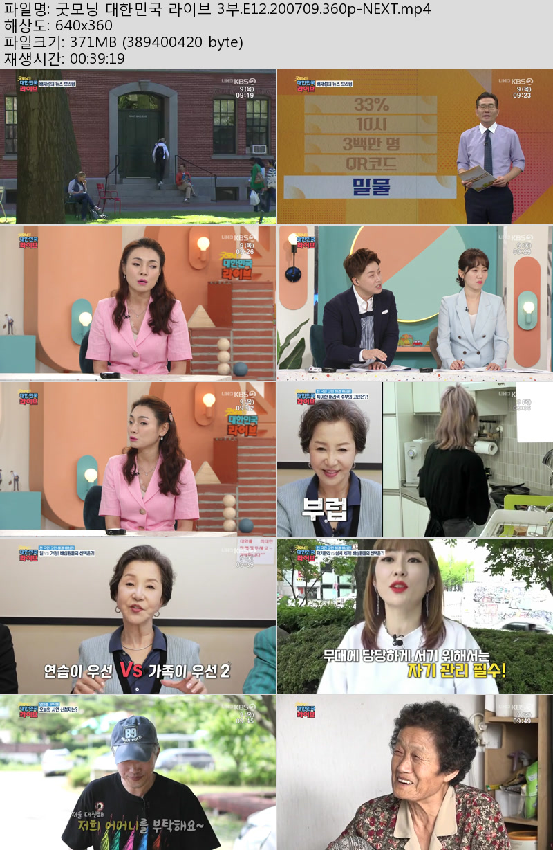 방송/동영상 굿모닝 대한민국 라이브 굿모닝 대한민국 라이브 3부.E12.200709.360p-NEXT 우야쓰꼬 2026.01.01 3,490 371.4M 다운로드 1개 파일 굿모닝 대한민국 라이브 3부.E12.200709.360p-NEXT.mp4 371.4M 다운 추천 772 북마크 공유 목록 Tags 굿모닝 대한민국 라이브 3부 E12 200709 360p NEXT