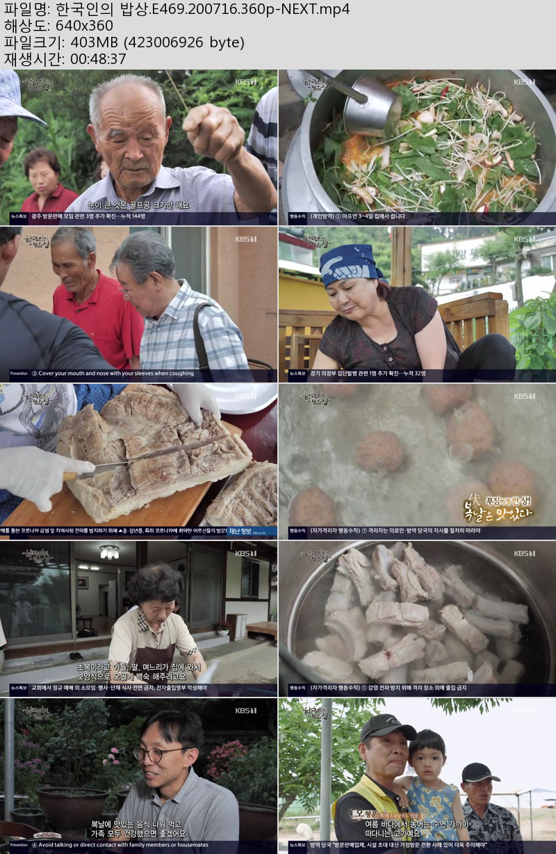 방송/동영상 한국인의 밥상 E469 한국인의 밥상.E469.200716.360p-NEXT 우야쓰꼬 2026.01.01 3,617 403.4M 다운로드 1개 파일 한국인의 밥상.E469.200716.360p-NEXT.mp4 403.4M 다운 추천 653 북마크 공유 목록 Tags 한국인의 밥상 E469 200716 360p NEXT