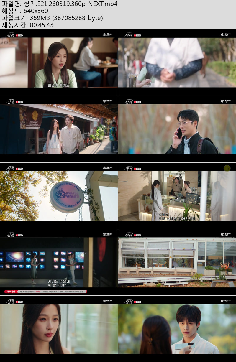드라마 쌍궤 E21 NEXT 쌍궤.E21.260319.360p-NEXT 우야쓰꼬 2026.04.24 5,274 369.2M 다운로드 1개 파일 쌍궤.E21.260319.360p-NEXT.mp4 369.2M 다운 추천 433 북마크 공유 목록 Tags 쌍궤 E21 NEXT