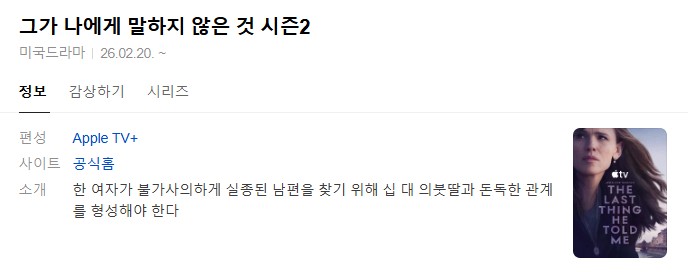 드라마 미드 그가 나에게 [미드-19] 그가 나에게 말하지 않은 것 시즌2 5화.2026.1080p.한글.. 인운트 2026.04.24 3,614 4.1G 다운로드 1개 파일 [미드-19] 그가 나에게 말하지 않은 것 시즌2 5화.2026.1080p.한글자막 4.1G 다운 추천 367 북마크 공유 목록 Tags 미드 그가 나에게 말하지 않은