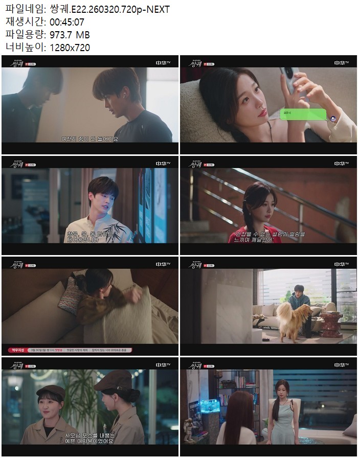 드라마 쌍궤 E22 NEXT 쌍궤.E22.260320.720p-NEXT 디스사랑 2026.04.24 6,544 973.7M 다운로드 1개 파일 쌍궤.E22.260320.720p-NEXT.mp4 973.7M 다운 추천 228 북마크 공유 목록 Tags 쌍궤 E22 NEXT