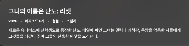 드라마 그녀의 이름은 난노 그녀의 이름은 난노 리셋 3화.2026.1080p.한글자막 인운트 2026.04.24 3,707 1.9G 다운로드 1개 파일 그녀의 이름은 난노 리셋 3화.2026.1080p.한글자막 1.9G 다운 추천 210 북마크 공유 목록 Tags 그녀의 이름은 난노 리셋 3화