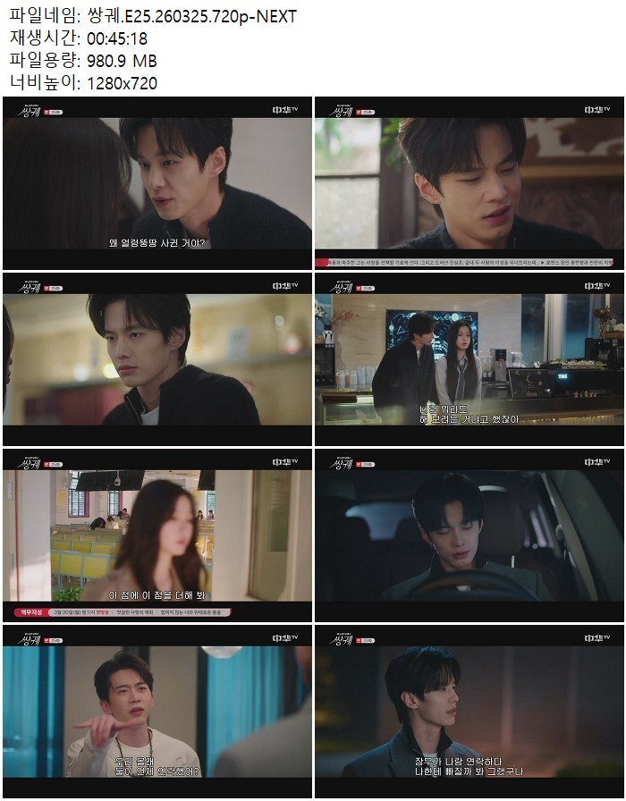 드라마 쌍궤 E25 NEXT 쌍궤.E25.260325.720p-NEXT 디스사랑 2026.04.24 3,901 980.9M 다운로드 1개 파일 쌍궤.E25.260325.720p-NEXT.mp4 980.9M 다운 추천 297 북마크 공유 목록 Tags 쌍궤 E25 NEXT