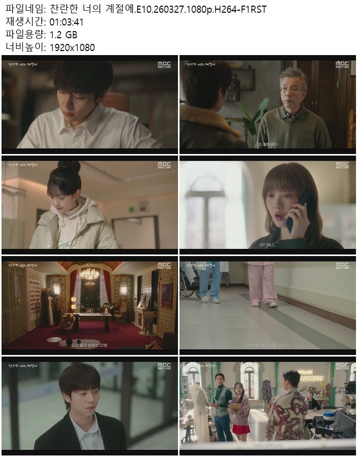 드라마 찬란한 너의 계절에 찬란한 너의 계절에.E10.260327.1080p.H264-F1RST 디스사랑 2026.04.24 4,577 1.2G 다운로드 1개 파일 찬란한 너의 계절에.E10.260327.1080p.H264-F1RST.mp4 1.2G 다운 추천 232 북마크 공유 목록 Tags 찬란한 너의 계절에 E10 H264