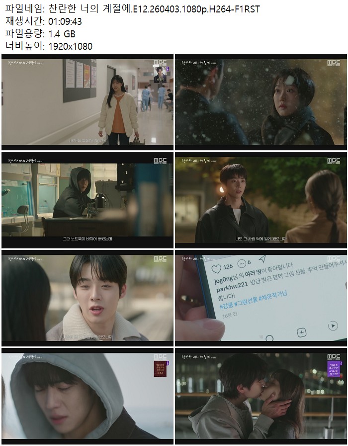 드라마 찬란한 너의 계절에 찬란한 너의 계절에.E12.260403.1080p.H264 디스사랑 2026.04.24 4,989 1.4G 다운로드 1개 파일 찬란한 너의 계절에.E12.260403.1080p.H264-F1RST.mp4 1.4G 다운 추천 321 북마크 공유 목록 Tags 찬란한 너의 계절에 E12 H264