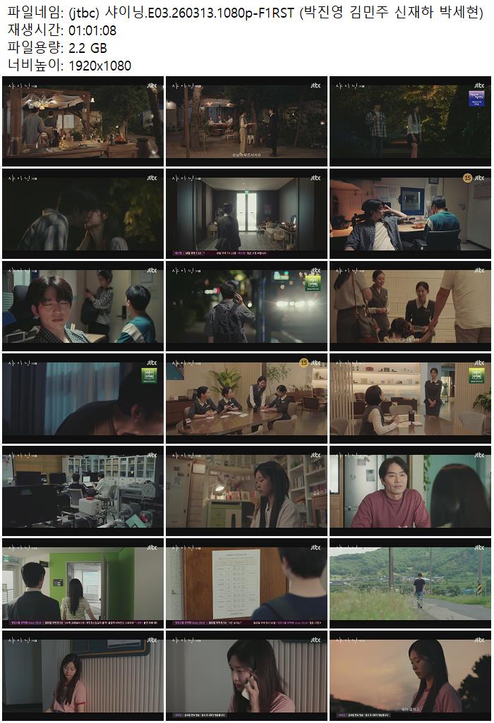 드라마 jtbc 샤이닝 E03 (jtbc) 샤이닝.E03.260313.1080p-F1RST (박진영 김민주 신재하 박.. ceasar1995 2026.04.24 4,475 2.2G 다운로드 1개 파일 (jtbc) 샤이닝.E03.260313.1080p-F1RST (박진영 김민주 신재하 박세현).mp4 2.2G 다운 추천 251 북마크 공유 목록 Tags jtbc 샤이닝 E03 F1RST 박진영