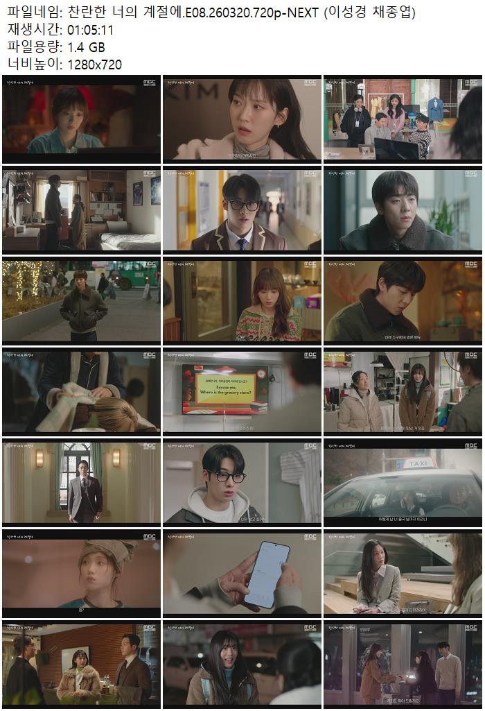 드라마 찬란한 너의 계절에 찬란한 너의 계절에.E08.260320.720p-NEXT (이성경 채종엽) ceasar1995 2026.04.24 6,917 1.4G 다운로드 1개 파일 찬란한 너의 계절에.E08.260320.720p-NEXT (이성경 채종엽).mp4 1.4G 다운 추천 421 북마크 공유 목록 Tags 찬란한 너의 계절에 E08 NEXT