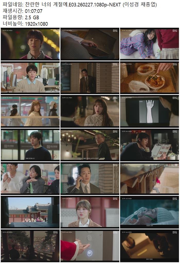 드라마 찬란한 너의 계절에 찬란한 너의 계절에.E03.260227.1080p-NEXT (이성경 채종엽) ceasar1995 2026.04.24 4,020 2.5G 다운로드 1개 파일 찬란한 너의 계절에.E03.260227.1080p-NEXT (이성경 채종엽).mp4 2.5G 다운 추천 417 북마크 공유 목록 Tags 찬란한 너의 계절에 E03 NEXT