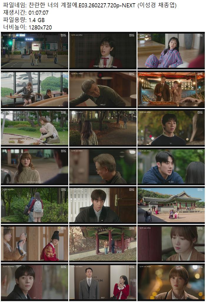 드라마 찬란한 너의 계절에 찬란한 너의 계절에.E03.260227.720p-NEXT (이성경 채종엽) ceasar1995 2026.04.24 3,408 1.4G 다운로드 1개 파일 찬란한 너의 계절에.E03.260227.720p-NEXT (이성경 채종엽).mp4 1.4G 다운 추천 277 북마크 공유 목록 Tags 찬란한 너의 계절에 E03 NEXT