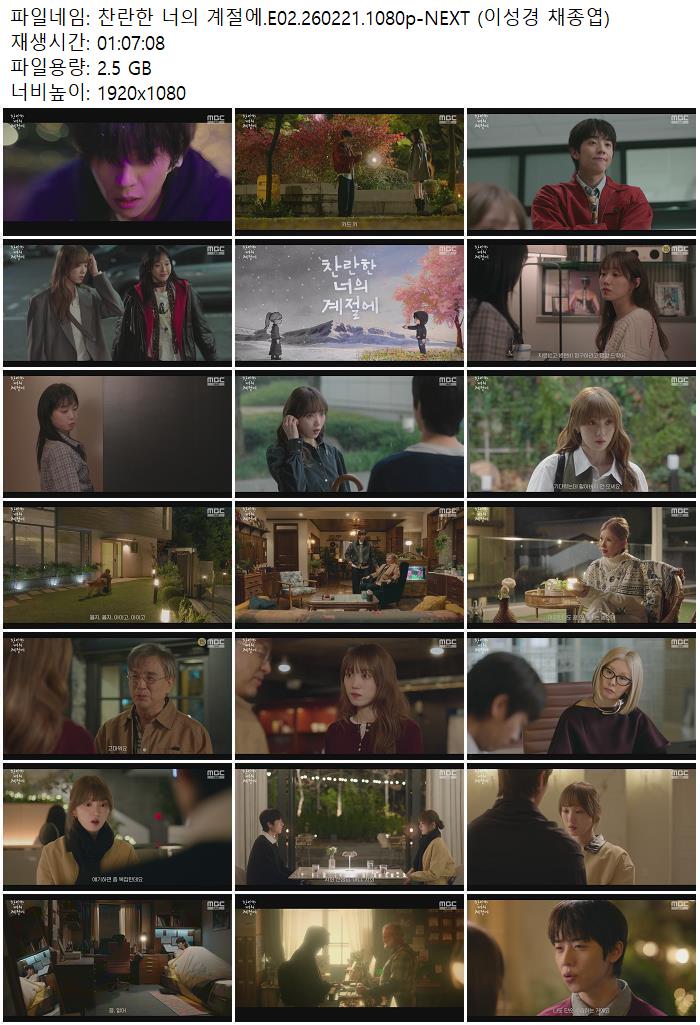 드라마 찬란한 너의 계절에 찬란한 너의 계절에.E02.260221.1080p-NEXT (이성경 채종엽) ceasar1995 2026.04.24 5,497 2.5G 다운로드 1개 파일 찬란한 너의 계절에.E02.260221.1080p-NEXT (이성경 채종엽).mp4 2.5G 다운 추천 426 북마크 공유 목록 Tags 찬란한 너의 계절에 E02 NEXT