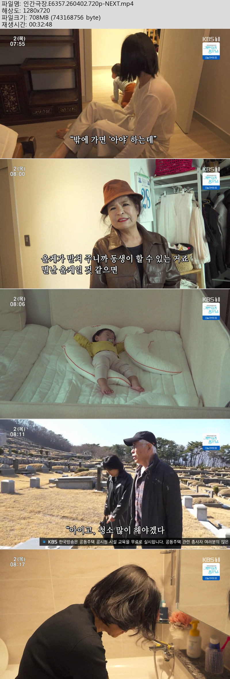 방송/동영상 인간극장 E6357 NEXT 인간극장.E6357.260402.720p-NEXT 방송다좋아 2026.04.24 4,927 708.7M 다운로드 1개 파일 인간극장.E6357.260402.720p-NEXT.mp4 708.7M 다운 추천 242 북마크 공유 목록 Tags 인간극장 E6357 NEXT