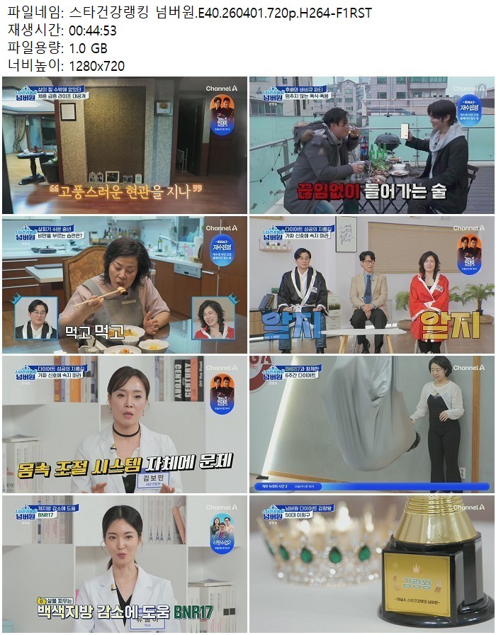 방송/동영상 스타건강랭킹 넘버원 E40 스타건강랭킹 넘버원.E40.260401.720p.H264 디스사랑 2026.04.24 5,495 1.0G 다운로드 1개 파일 스타건강랭킹 넘버원.E40.260401.720p.H264-F1RST.mp4 1.0G 다운 추천 415 북마크 공유 목록 Tags 스타건강랭킹 넘버원 E40 H264 F1RST