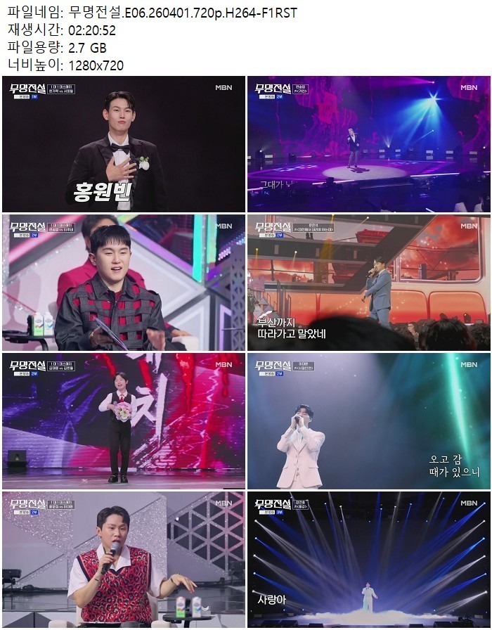 방송/동영상 무명전설 E06 H264 무명전설.E06.260401.720p.H264 디스사랑 2026.04.24 4,255 2.7G 다운로드 1개 파일 무명전설.E06.260401.720p.H264-F1RST.mp4 2.7G 다운 추천 284 북마크 공유 목록 Tags 무명전설 E06 H264 F1RST