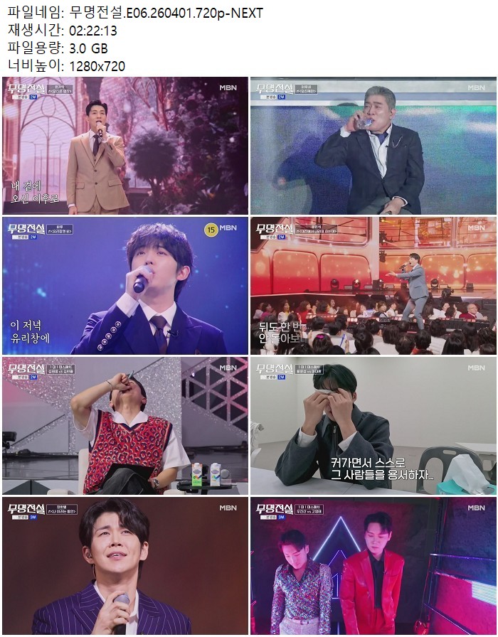 방송/동영상 무명전설 E06 NEXT 무명전설.E06.260401.720p-NEXT 디스사랑 2026.04.24 5,419 3.0G 다운로드 1개 파일 무명전설.E06.260401.720p-NEXT.mp4 3.0G 다운 추천 215 북마크 공유 목록 Tags 무명전설 E06 NEXT