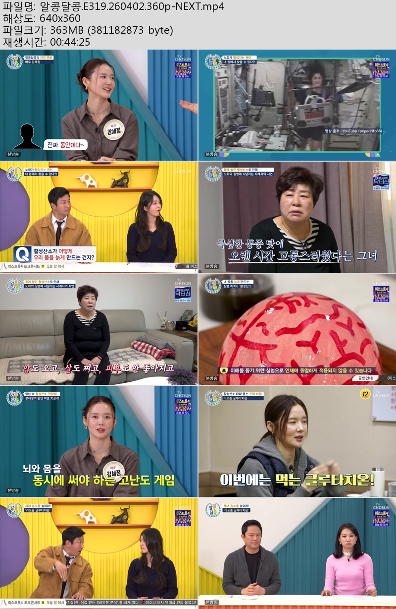 방송/동영상 알콩달콩 E319 NEXT 알콩달콩.E319.260402.360p-NEXT 우야쓰꼬 2026.04.24 5,056 363.5M 다운로드 1개 파일 알콩달콩.E319.260402.360p-NEXT.mp4 363.5M 다운 추천 214 북마크 공유 목록 Tags 알콩달콩 E319 NEXT