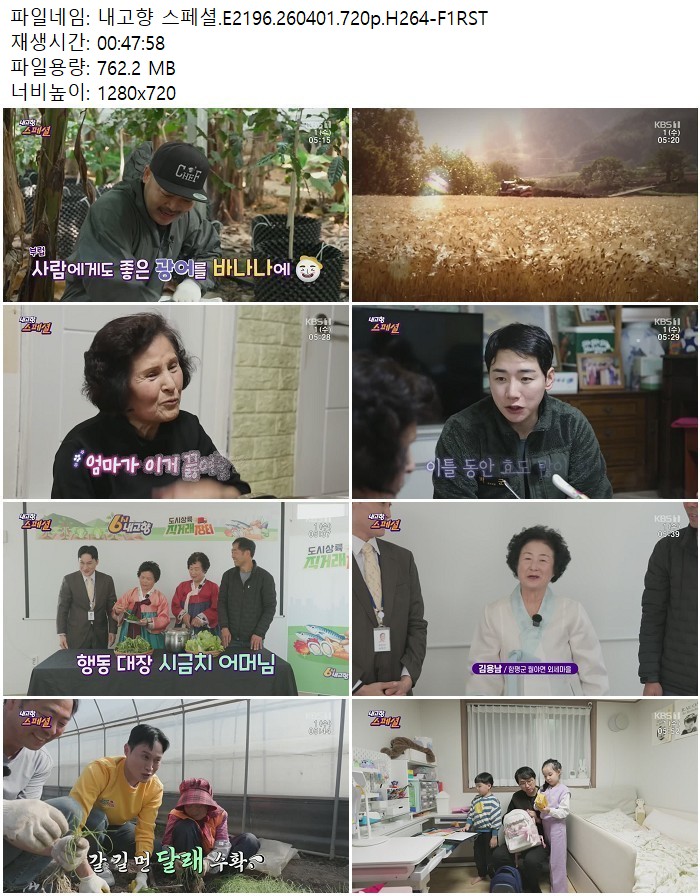 방송/동영상 내고향 스페셜 E2196 내고향 스페셜.E2196.260401.720p.H264 디스사랑 2026.04.24 6,702 762.2M 다운로드 1개 파일 내고향 스페셜.E2196.260401.720p.H264-F1RST.mp4 762.2M 다운 추천 325 북마크 공유 목록 Tags 내고향 스페셜 E2196 H264 F1RST