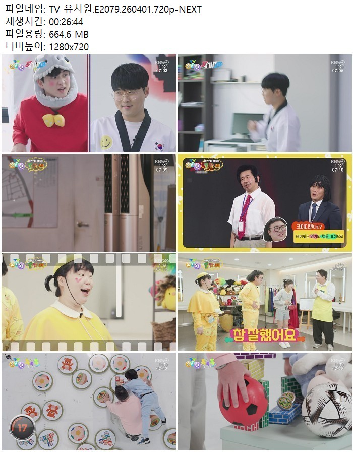 방송/동영상 TV 유치원 E2079 TV 유치원.E2079.260401.720p-NEXT 디스사랑 2026.04.24 6,811 664.6M 다운로드 1개 파일 TV 유치원.E2079.260401.720p-NEXT.mp4 664.6M 다운 추천 201 북마크 공유 목록 Tags TV 유치원 E2079 NEXT