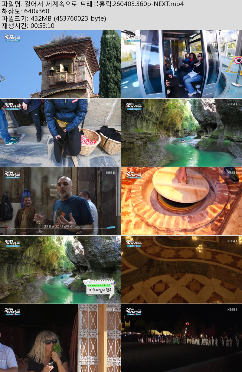 방송/동영상 걸어서 세계속으로 트래블홀릭 걸어서 세계속으로 트래블홀릭.260403.360p-NEXT 우야쓰꼬 2026.04.24 6,364 432.7M 다운로드 1개 파일 걸어서 세계속으로 트래블홀릭.260403.360p-NEXT.mp4 432.7M 다운 추천 200 북마크 공유 목록 Tags 걸어서 세계속으로 트래블홀릭 NEXT