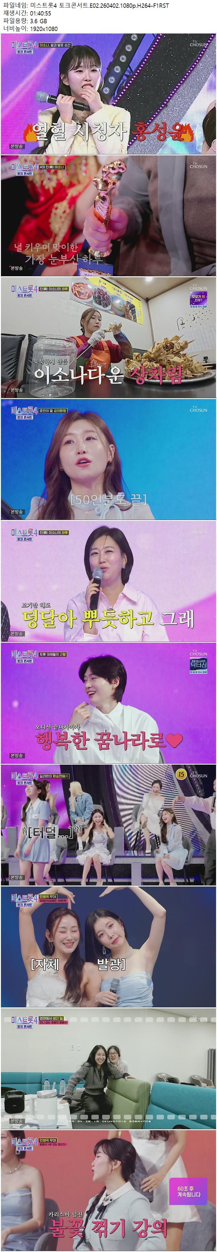 방송/동영상 미스트롯4 토크콘서트 E02 미스트롯4 토크콘서트.E02.260402.1080p.H264-F1RST lizard21 2026.04.24 5,190 3.6G 다운로드 1개 파일 미스트롯4 토크콘서트.E02.260402.1080p.H264-F1RST.mp4 3.6G 다운 추천 420 북마크 공유 목록 Tags 미스트롯4 토크콘서트 E02 H264 F1RST