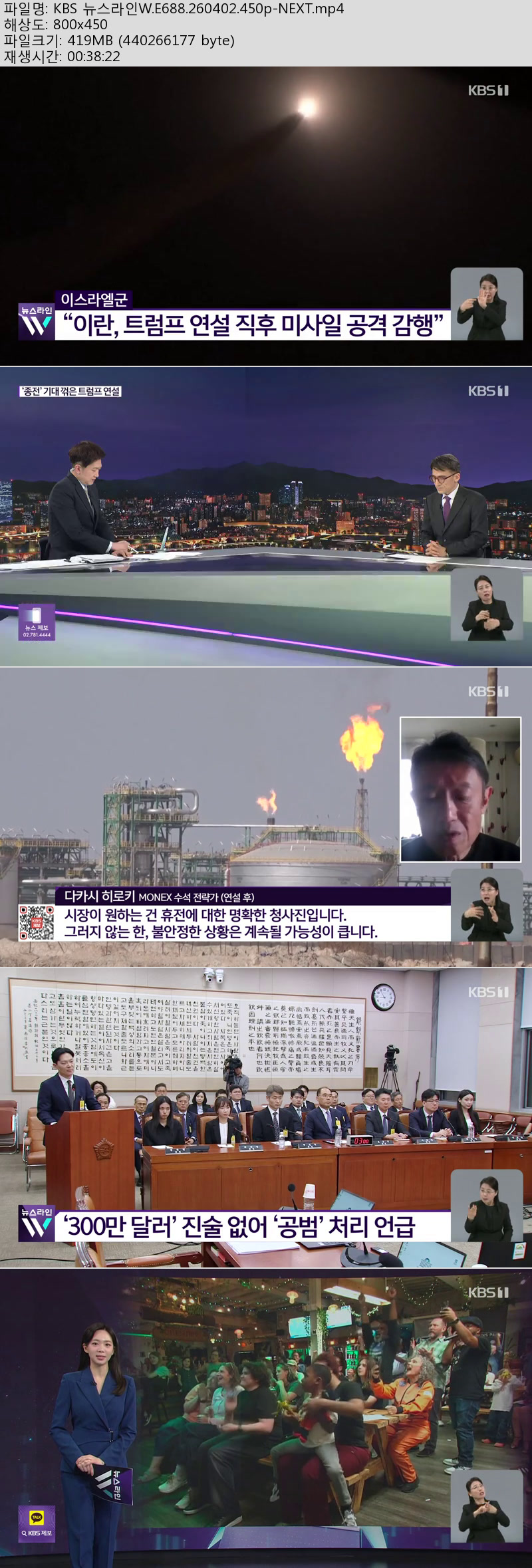방송/동영상 KBS 뉴스라인W E688 KBS 뉴스라인W.E688.260402.450p-NEXT 긍정고수 2026.04.24 7,121 419.9M 다운로드 1개 파일 KBS 뉴스라인W.E688.260402.450p-NEXT.mp4 419.9M 다운 추천 490 북마크 공유 목록 Tags KBS 뉴스라인W E688 NEXT