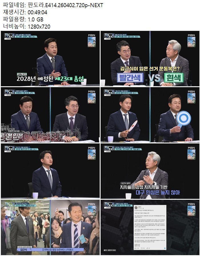 방송/동영상 판도라 E414 NEXT 판도라.E414.260402.720p-NEXT 디스사랑 2026.04.24 3,382 1.0G 다운로드 1개 파일 판도라.E414.260402.720p-NEXT.mp4 1.0G 다운 추천 349 북마크 공유 목록 Tags 판도라 E414 NEXT