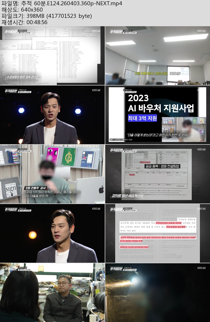방송/동영상 추적 60분 E124 추적 60분.E124.260403.360p-NEXT 우야쓰꼬 2026.04.24 5,592 398.4M 다운로드 1개 파일 추적 60분.E124.260403.360p-NEXT.mp4 398.4M 다운 추천 462 북마크 공유 목록 Tags 추적 60분 E124 NEXT