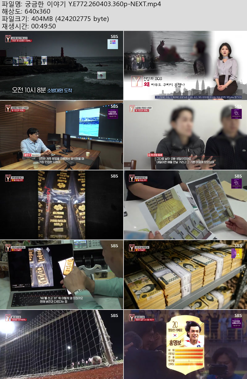 방송/동영상 궁금한 이야기 E772 궁금한 이야기 Y.E772.260403.360p-NEXT 우야쓰꼬 2026.04.24 5,204 404.6M 다운로드 1개 파일 궁금한 이야기 Y.E772.260403.360p-NEXT.mp4 404.6M 다운 추천 259 북마크 공유 목록 Tags 궁금한 이야기 E772 NEXT