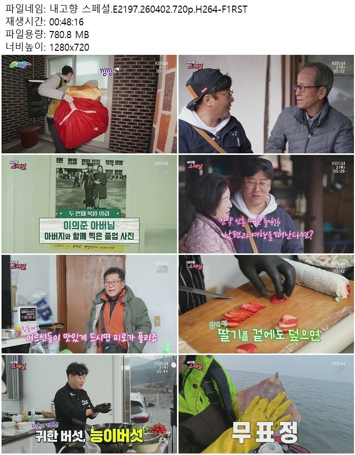 방송/동영상 내고향 스페셜 E2197 내고향 스페셜.E2197.260402.720p.H264 디스사랑 2026.04.24 5,829 780.8M 다운로드 1개 파일 내고향 스페셜.E2197.260402.720p.H264-F1RST.mp4 780.8M 다운 추천 439 북마크 공유 목록 Tags 내고향 스페셜 E2197 H264 F1RST