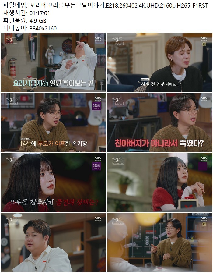 방송/동영상 꼬리에꼬리를무는그날이야기 E218 UHD 꼬리에꼬리를무는그날이야기.E218.260402.4K.UHD.2160p.H265 디스사랑 2026.04.24 5,553 4.9G 다운로드 1개 파일 꼬리에꼬리를무는그날이야기.E218.260402.4K.UHD.2160p.H265-F1RST.mp4 4.9G 다운 추천 341 북마크 공유 목록 Tags 꼬리에꼬리를무는그날이야기 E218 UHD H265 F1RST