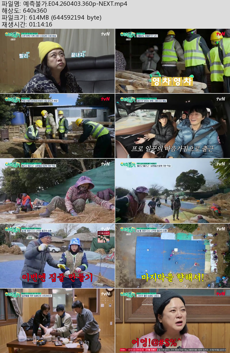 방송/동영상 예측불가 E04 NEXT 예측불가.E04.260403.360p-NEXT 우야쓰꼬 2026.04.24 5,335 614.7M 다운로드 1개 파일 예측불가.E04.260403.360p-NEXT.mp4 614.7M 다운 추천 352 북마크 공유 목록 Tags 예측불가 E04 NEXT