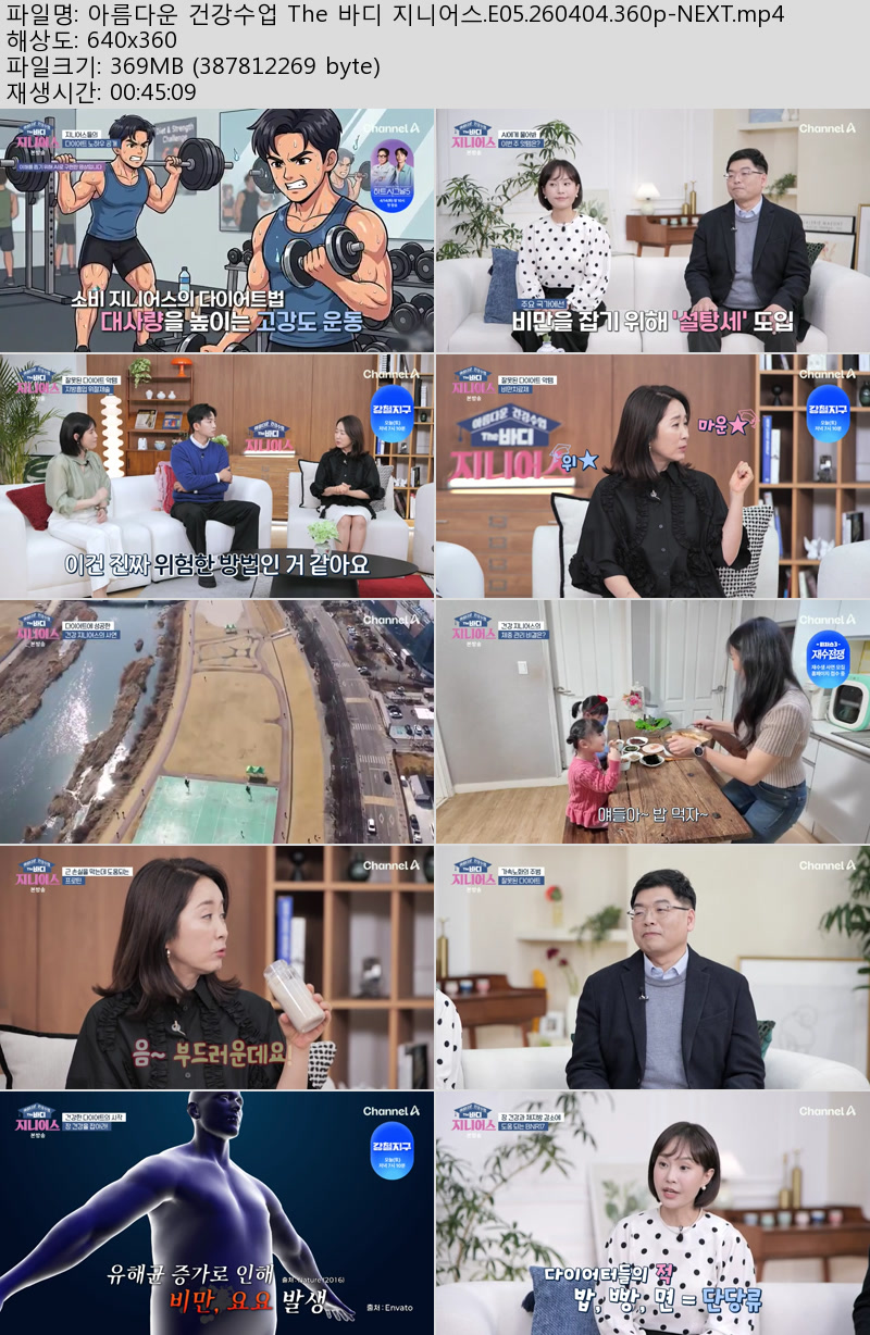 방송/동영상 아름다운 건강수업 The 아름다운 건강수업 The 바디 지니어스.E05.260404.360p-NEXT 우야쓰꼬 2026.04.24 3,983 369.8M 다운로드 1개 파일 아름다운 건강수업 The 바디 지니어스.E05.260404.360p-NEXT.mp4 369.8M 다운 추천 406 북마크 공유 목록 Tags 아름다운 건강수업 The 바디 지니어스