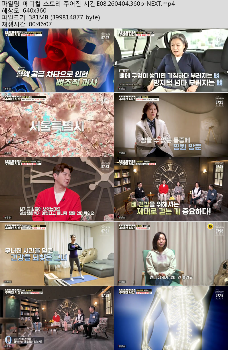 방송/동영상 메디컬 스토리 주어진 메디컬 스토리 주어진 시간.E08.260404.360p-NEXT 우야쓰꼬 2026.04.24 3,959 381.3M 다운로드 1개 파일 메디컬 스토리 주어진 시간.E08.260404.360p-NEXT.mp4 381.3M 다운 추천 408 북마크 공유 목록 Tags 메디컬 스토리 주어진 시간 E08