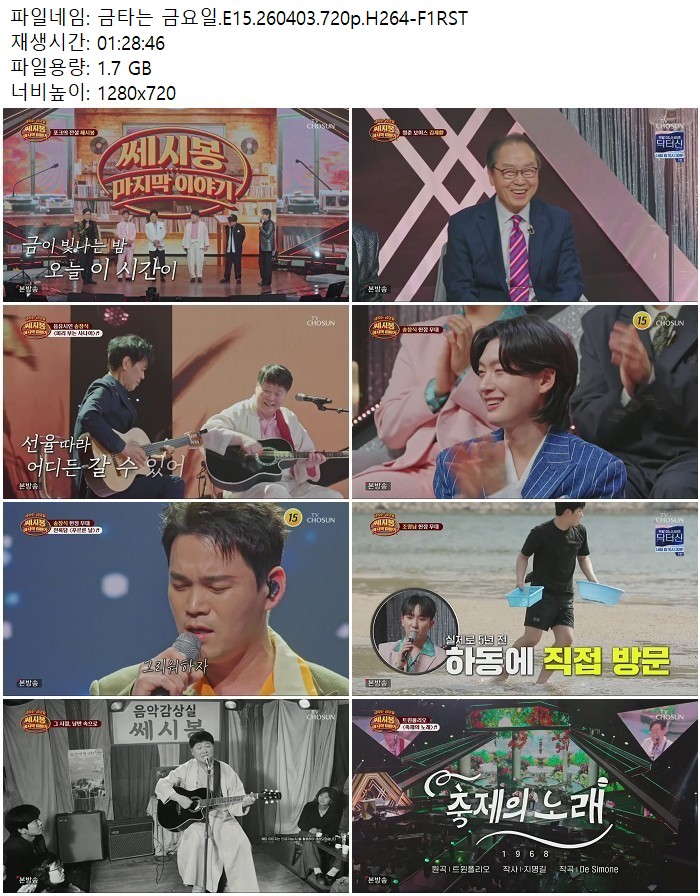 방송/동영상 금타는 금요일 E15 금타는 금요일.E15.260403.720p.H264 디스사랑 2026.04.24 3,058 1.7G 다운로드 1개 파일 금타는 금요일.E15.260403.720p.H264-F1RST.mp4 1.7G 다운 추천 241 북마크 공유 목록 Tags 금타는 금요일 E15 H264 F1RST