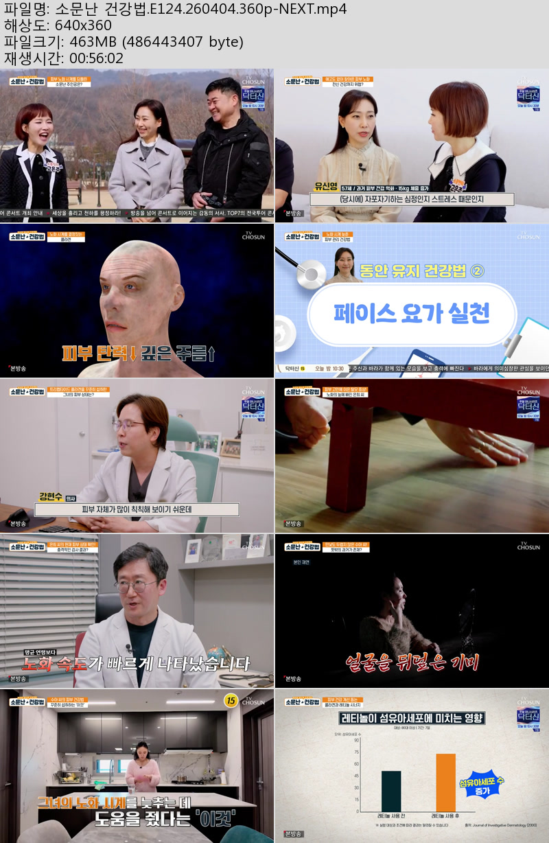 방송/동영상 소문난 건강법 E124 소문난 건강법.E124.260404.360p-NEXT 우야쓰꼬 2026.04.24 3,849 463.9M 다운로드 1개 파일 소문난 건강법.E124.260404.360p-NEXT.mp4 463.9M 다운 추천 394 북마크 공유 목록 Tags 소문난 건강법 E124 NEXT