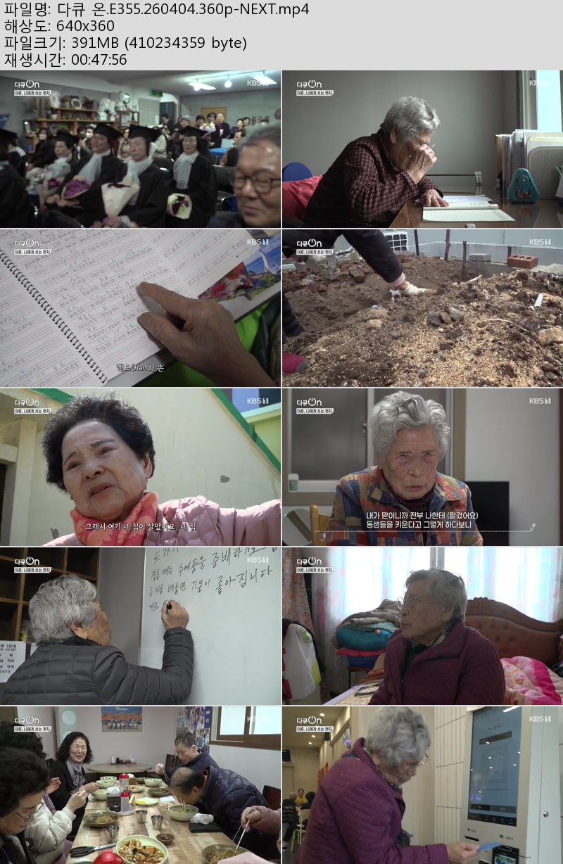 방송/동영상 다큐 E355 NEXT 다큐 온.E355.260404.360p-NEXT 우야쓰꼬 2026.04.24 4,575 391.2M 다운로드 1개 파일 다큐 온.E355.260404.360p-NEXT.mp4 391.2M 다운 추천 350 북마크 공유 목록 Tags 다큐 E355 NEXT