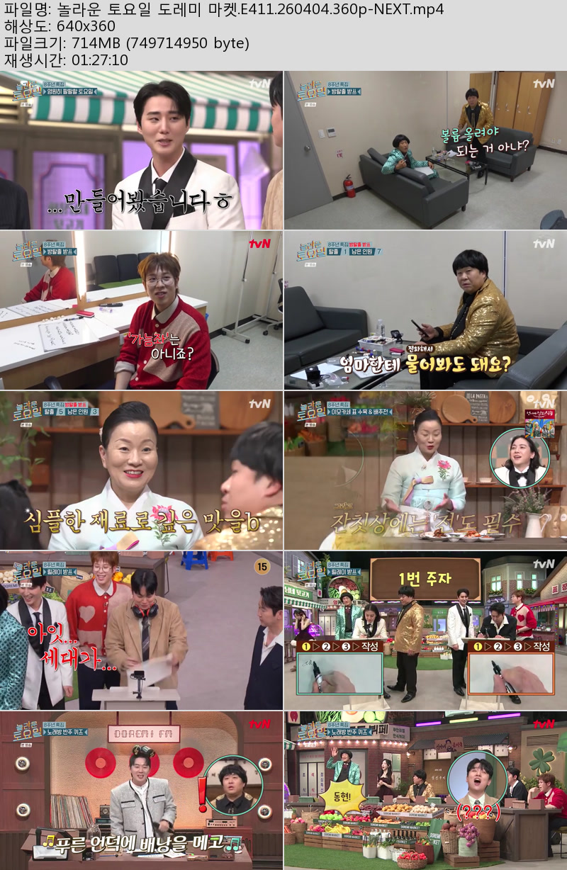 방송/동영상 놀라운 토요일 도레미 놀라운 토요일 도레미 마켓.E411.260404.360p-NEXT 우야쓰꼬 2026.04.24 4,763 715.0M 다운로드 1개 파일 놀라운 토요일 도레미 마켓.E411.260404.360p-NEXT.mp4 715.0M 다운 추천 291 북마크 공유 목록 Tags 놀라운 토요일 도레미 마켓 E411