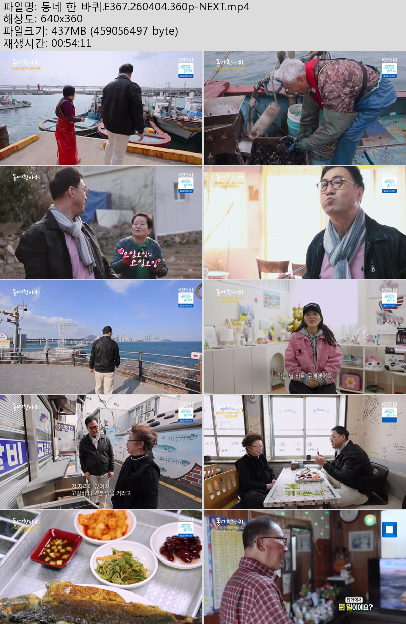 방송/동영상 동네 바퀴 E367 동네 한 바퀴.E367.260404.360p-NEXT 우야쓰꼬 2026.04.24 3,539 437.8M 다운로드 1개 파일 동네 한 바퀴.E367.260404.360p-NEXT.mp4 437.8M 다운 추천 254 북마크 공유 목록 Tags 동네 바퀴 E367 NEXT