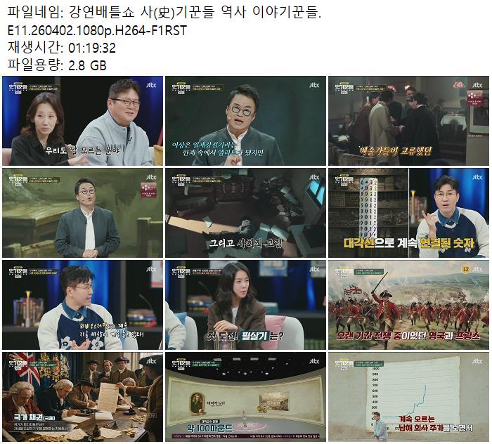 방송/동영상 강연배틀쇼 기꾼들 역사 강연배틀쇼 사(史)기꾼들 역사 이야기꾼들.E11.260402.1080p.H264-.. zndhkgkgk 2026.04.24 7,435 2.8G 다운로드 1개 파일 강연배틀쇼 사(史)기꾼들 역사 이야기꾼들.E11.260402.1080p.H264-F1RST... 2.8G 다운 추천 271 북마크 공유 목록 Tags 강연배틀쇼 기꾼들 역사 이야기꾼들 E11