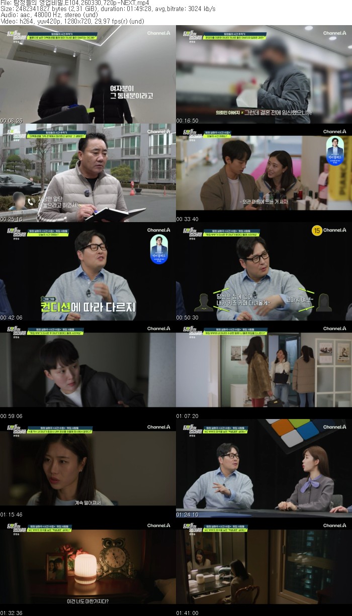 방송/동영상 탐정들의 영업비밀 E104 탐정들의 영업비밀.E104.260330.720p-NEXT sukyungyi 2026.04.24 3,137 2.3G 다운로드 1개 파일 탐정들의 영업비밀.E104.260330.720p-NEXT.mp4 2.3G 다운 추천 402 북마크 공유 목록 Tags 탐정들의 영업비밀 E104 NEXT