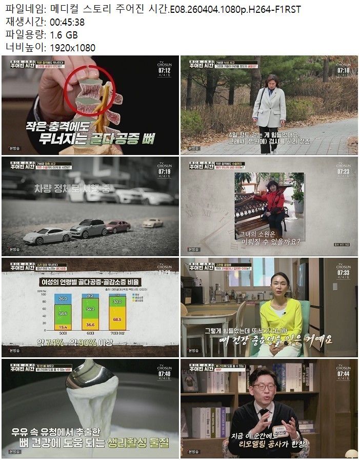 방송/동영상 메디컬 스토리 주어진 메디컬 스토리 주어진 시간.E08.260404.1080p.H264 디스사랑 2026.04.24 5,816 1.6G 다운로드 1개 파일 메디컬 스토리 주어진 시간.E08.260404.1080p.H264-F1RST.mp4 1.6G 다운 추천 390 북마크 공유 목록 Tags 메디컬 스토리 주어진 시간 E08