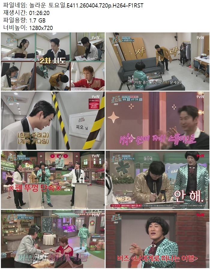 방송/동영상 놀라운 토요일 E411 놀라운 토요일.E411.260404.720p.H264 디스사랑 2026.04.24 4,537 1.7G 다운로드 1개 파일 놀라운 토요일.E411.260404.720p.H264-F1RST.mp4 1.7G 다운 추천 447 북마크 공유 목록 Tags 놀라운 토요일 E411 H264 F1RST