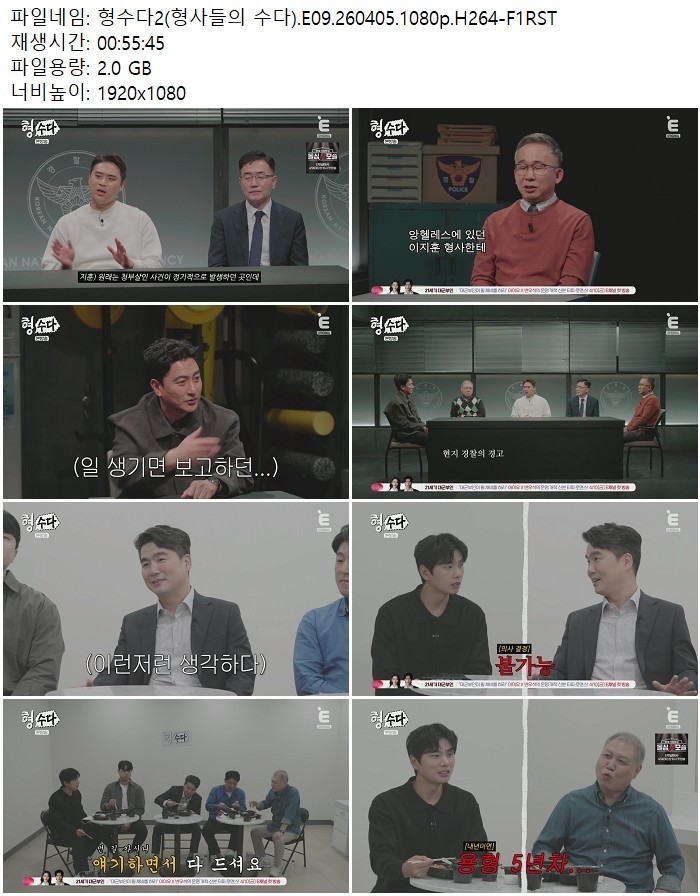 방송/동영상 형수다2 형사들의 수다 형수다2(형사들의 수다).E09.260405.1080p.H264 디스사랑 2026.04.24 4,940 2.0G 다운로드 1개 파일 형수다2(형사들의 수다).E09.260405.1080p.H264-F1RST.mp4 2.0G 다운 추천 201 북마크 공유 목록 Tags 형수다2 형사들의 수다 E09 H264